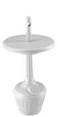 This a combination outdoor ashtray and patio table. It works great on the back porch, in the garden, by the pool, tailgating, or just about anywhere you want cigarette butts cleaned up.This ash and butt disposal stands about 30" tall. The table fits over the post and measures 15" wide. Makes a great table for that bistro look. Just add a couple of folding chairs.Brand New.This is one great little outdoor ashtray. It is made of extemely tough plastic which you would think would melt with hot cig butts going in. But no! It has a METAL bucket in the bottom to catch the butts. It doesn't need sand either as this design snuffs the butt out by restricting air to it.You can add sand to the unit to help stabilize it in windy areas and to keep the table top more steady.Really cleans up the smoking area. No more cigarette butts all over the ground! Very easy to clean. Just empty metal pail and drop back into bottom.Very easy to assemble, no screws or other hardware and certainly no tools needed. It just snaps together.It also has small holes at the bottom for hold downs or whatever type you prefer to keep it in one place.Great around a pool, entrances to the office, or a picnic area. The wind can't blow the ashes away and rain won't affect it either. Attractive white plastic.